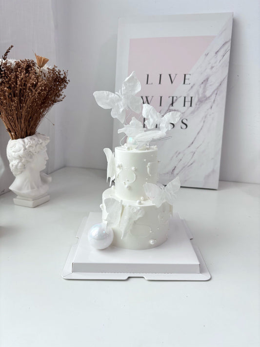Mini 2 Tier_White Butterflies